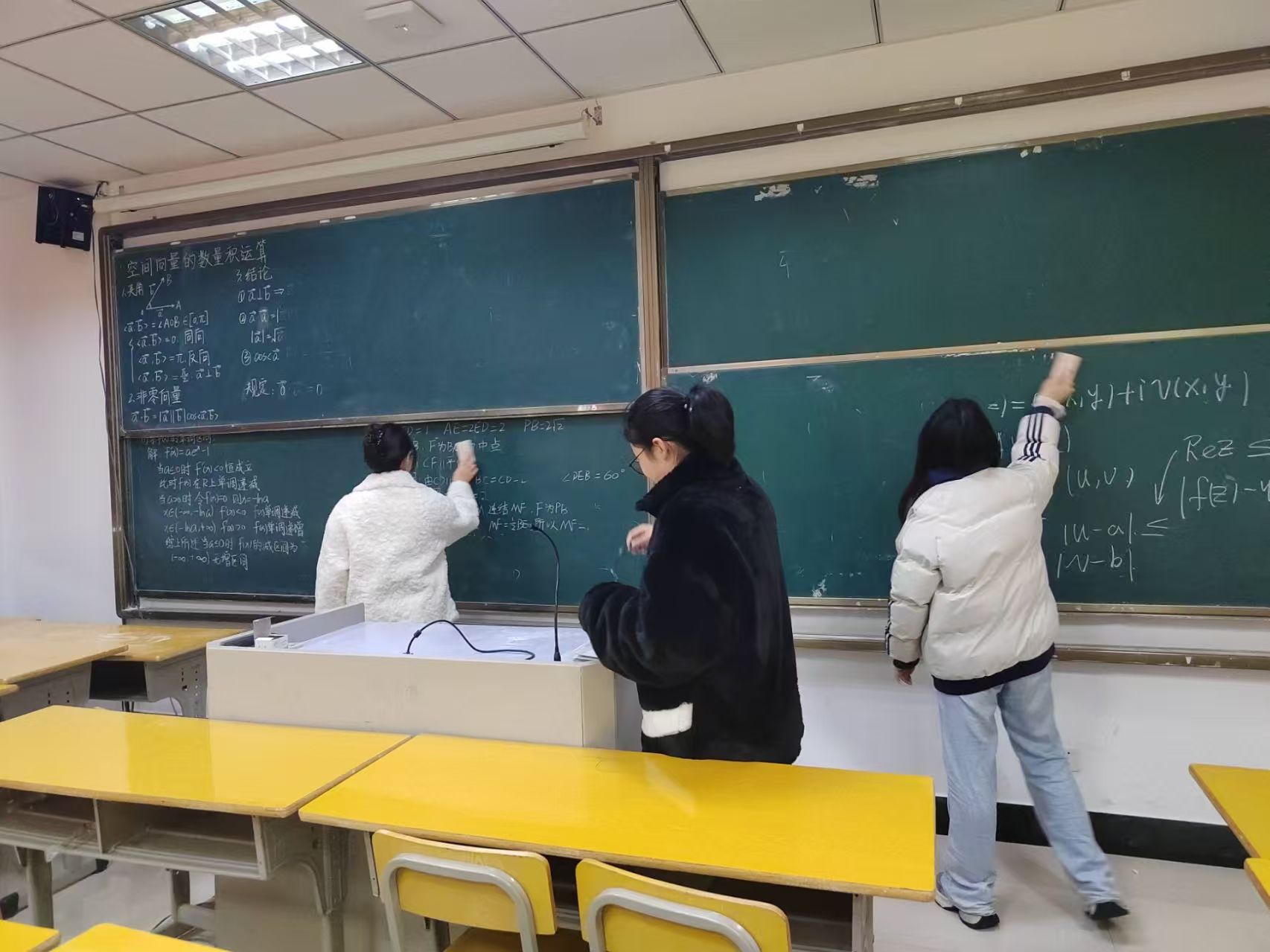 支部党员们分组深入数理楼,细致擦拭学院教室黑板、清理粉笔槽积灰、整理桌椅、清理桌椅内的杂物等。活动现场,参与党员纷纷表示:“擦黑板、理桌椅看似是小事,但能让老师板书更清晰、同学听课更舒心,这就是党员服务群众最直接的体现。”