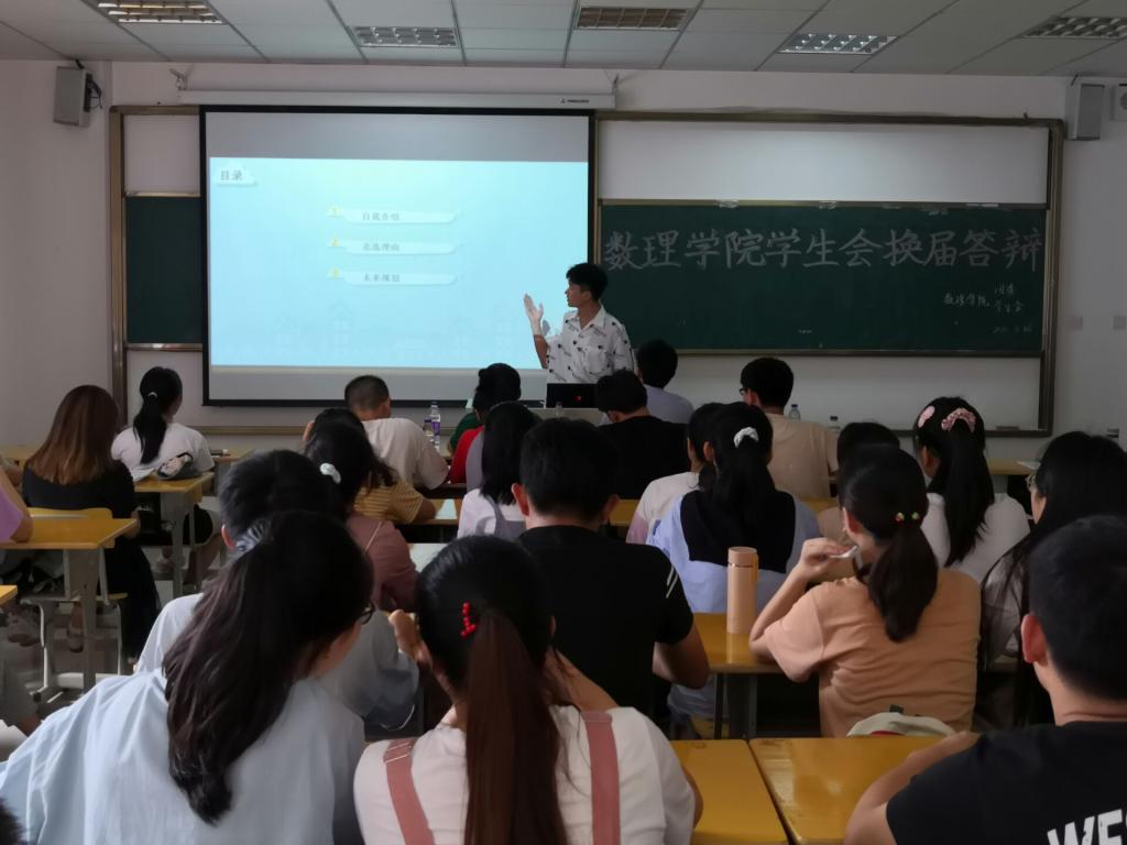 本次换届答辩是在学生自愿报名、团委及学生会各部门推荐、学院综合考察的基础上,确定了参加答辩的所有侯选人员。根据顺序依次上台进行PPT展示和答辩,他们从自我介绍、工作经历、工作成果、个人收获和未来规划等方面进行阐述,表达了自己对于团委、学生会工作、性质等方面的理解。