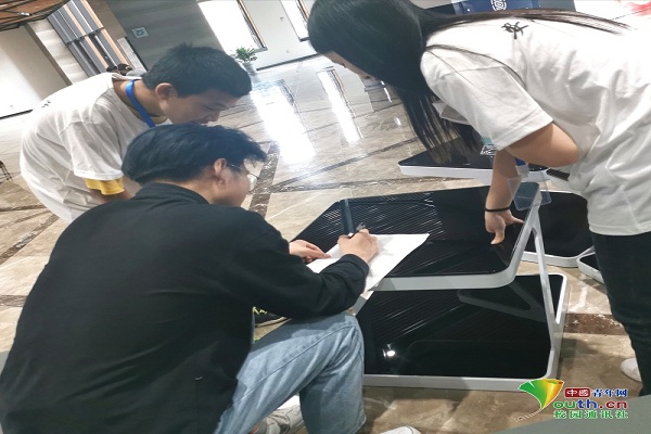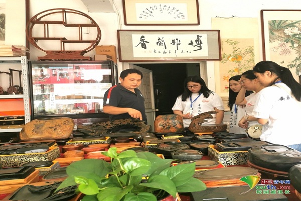 图为实践队员前往文房四宝商场参观调研,听当地居民介绍各类砚石与宣纸。中国青年网通讯员 杜维美 供图