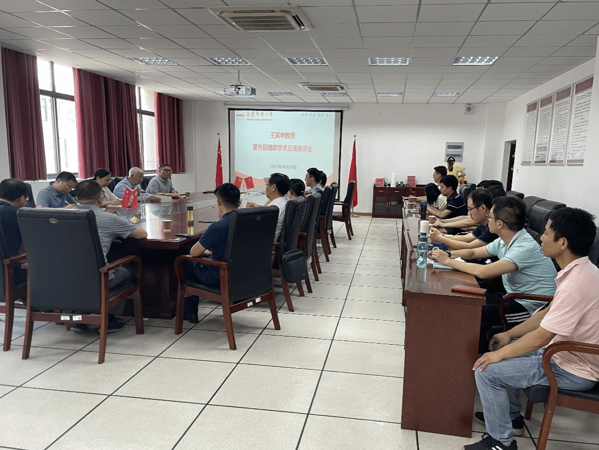 6月14日,原物理与电气工程学院院长王其申教授著作捐赠暨学术交流座谈会在太阳成集团tyc234cc307会议室举行。副院长易明芳、副院长伍代勇、副院长殷周平及学院骨干教师共20余人参加了座谈会,会议由殷周平教授主持。