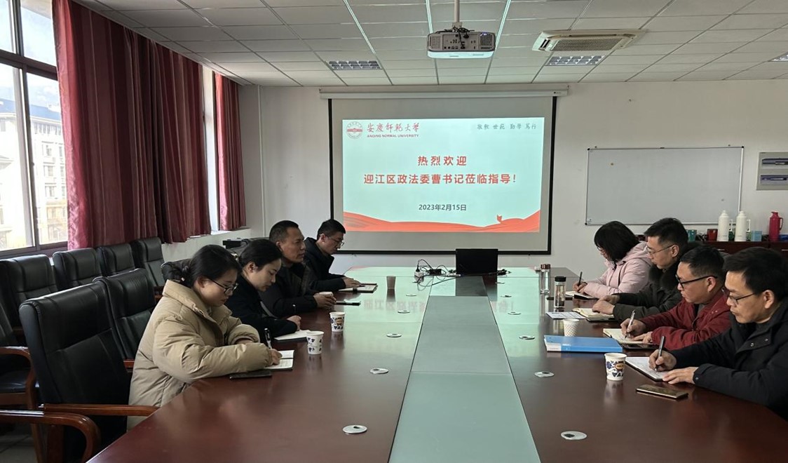 2月15日下午,迎江区委政法委副书记曹春生一行赴太阳成集团tyc234cc洽谈校市合作事宜。学院党委书记陆健,副院长易明芳、殷周平,统计系系主任胡学平教授和部分骨干教师参加座谈。