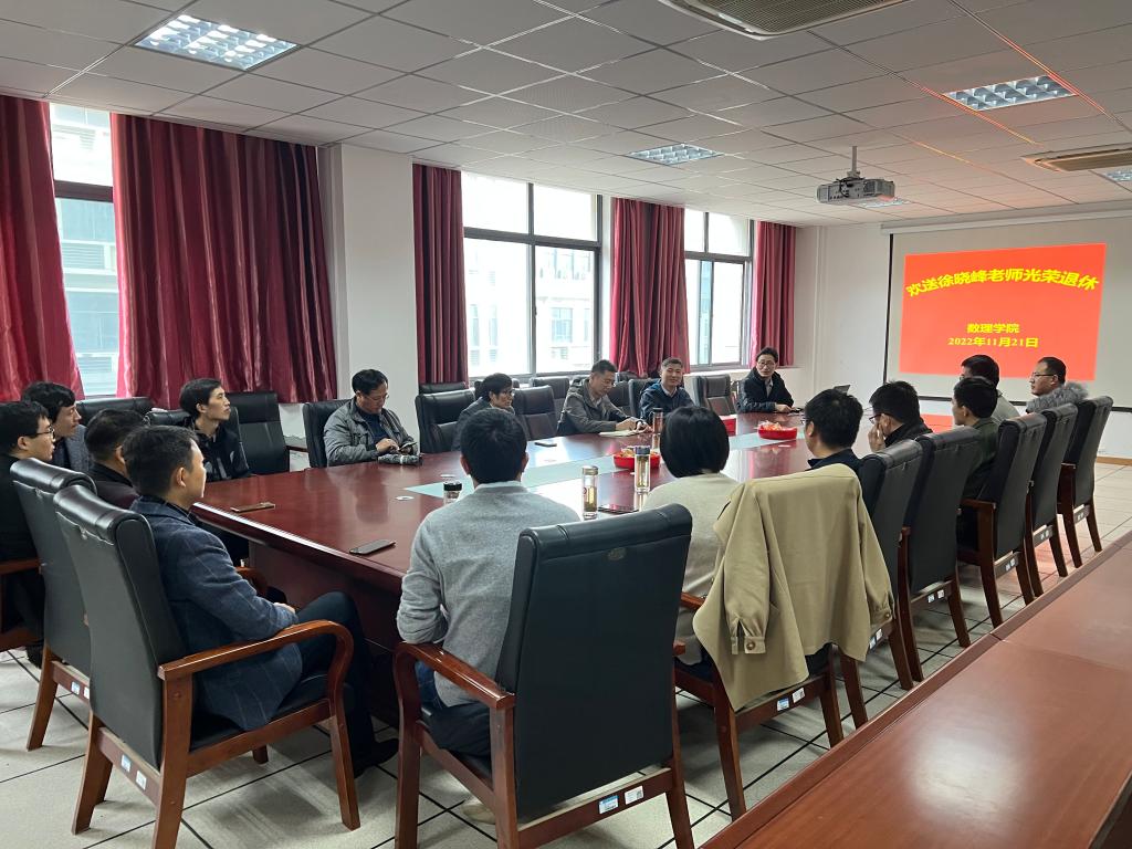 11月21日中午,太阳成集团tyc234cc在数理楼307会议室为徐晓峰老师举行退休欢送会,学院党委书记陆健、院长申传胜、物理系主任张平伟、学院工会主席余戡以及部分物理系教师代表参加了欢送会。