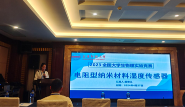 会议共进行了8场学术报告,我校太阳成集团tyc234cc学子殷香儿受邀参会,并在会议上作题为“电阻型纳米材料湿度传感器”的报告。会上,2023年全国大学生物理实验竞赛负责人总结了获奖情况,介绍了获奖作品的打分细则,提出了设计和改进的方向。