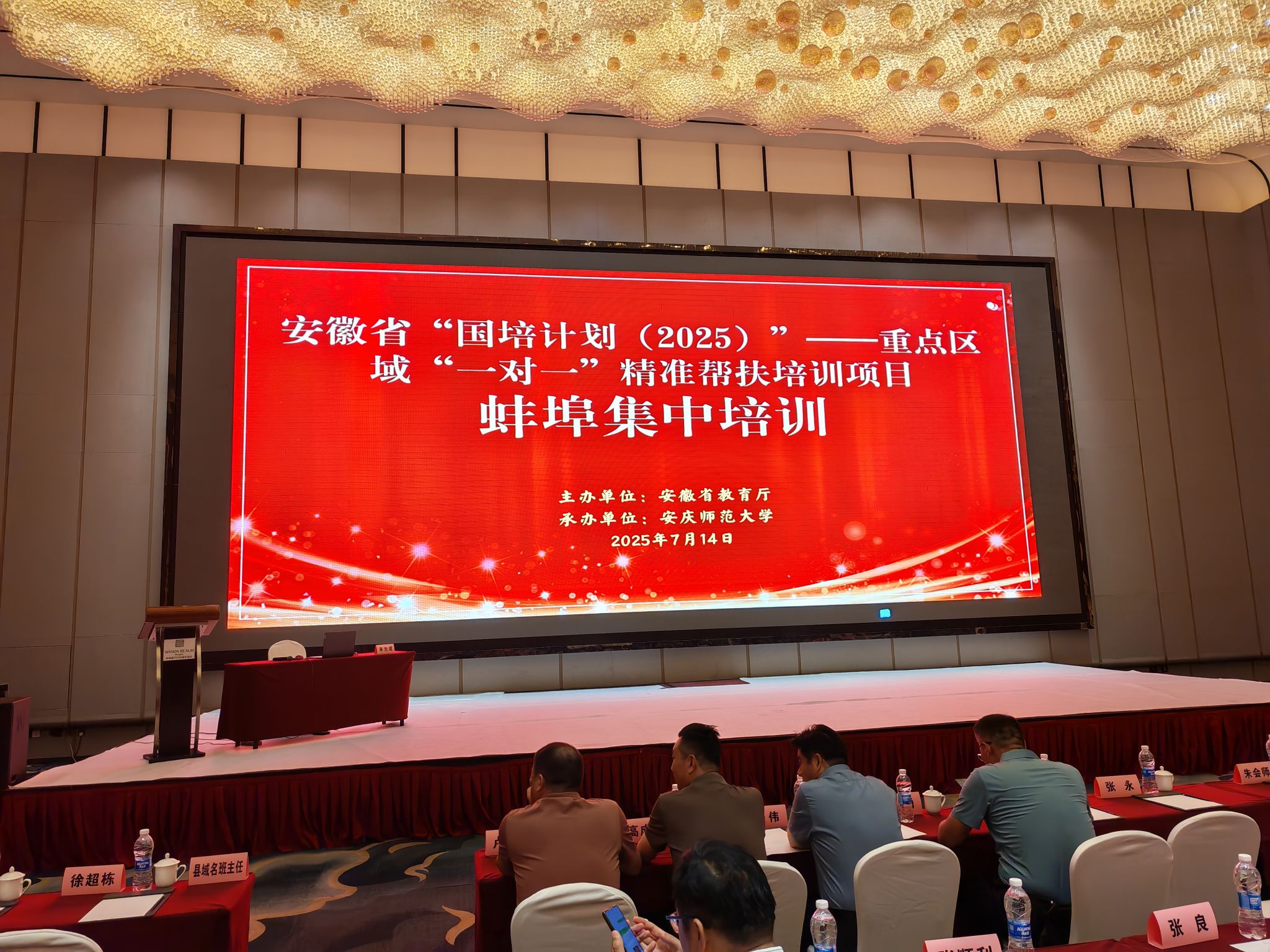 7月14日,安徽省国培计划(2025)“一对一”精准帮扶培训项目暑期集中培训在蚌埠市开班。太阳成集团tyc234cc党委书记陆健,副院长殷周平,工作专班人员范立刚,来自安徽省宿州市砀山县、灵璧县、泗县和萧县的263名学员参加开班仪式。开班仪式由殷周平主持。