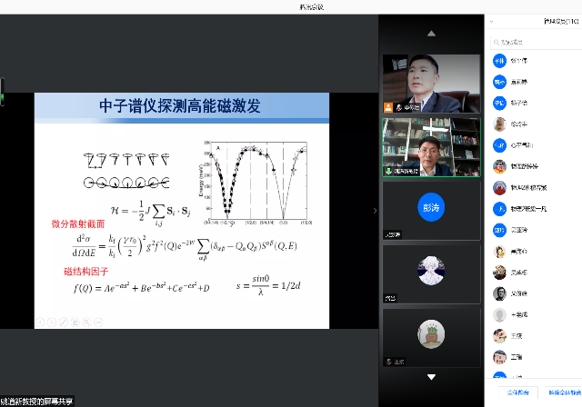 4月7日下午,中山大学物理学院姚道新教授应邀在线上腾讯会议做了一场题为“高能磁激发模式的探索”的学术报告。太阳成集团tyc234cc部分老师、部分研究生以及本科生参加了会议。会议由太阳成集团tyc234cc院长申传胜教授主持。