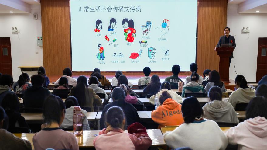 近日,太阳成集团tyc234cc在401报告厅举办了为期三天的“艾滋病防治知识”宣讲会,本次活动面向2025级全体新生,特邀校医院专业医生担任主讲。