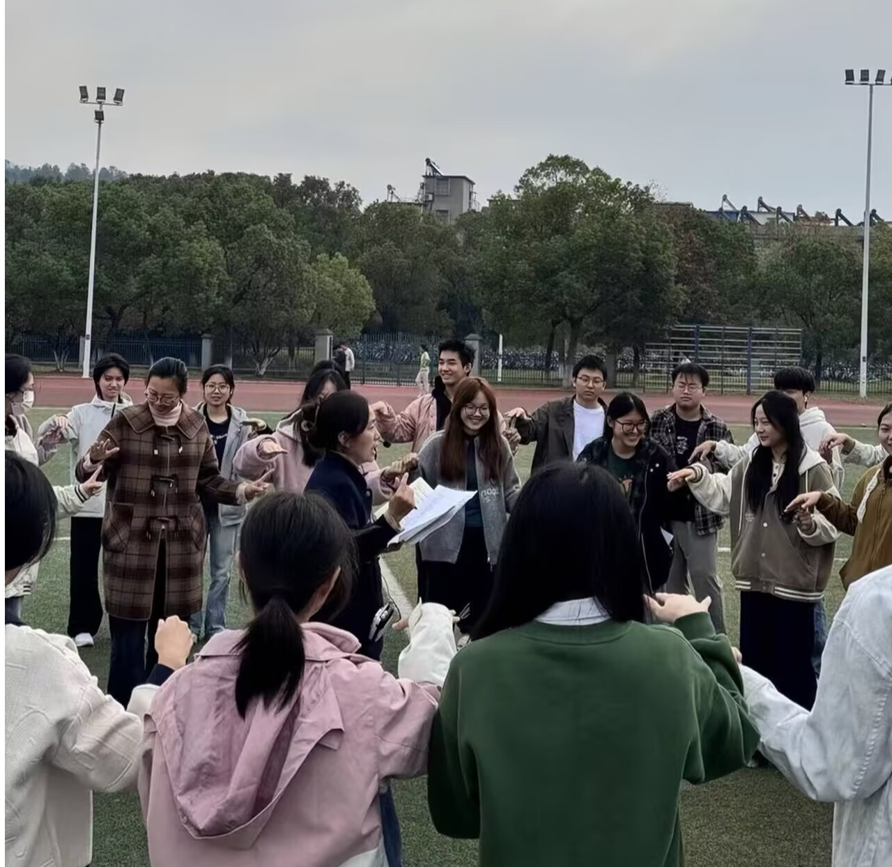 11月4日,数学与应用数学2024级1、2班辅导员滕秀花老师带领全体同学在东门操场开展“携手同行 共筑未来梦”班级心理团建活动。活动由“抓住幸福 放掉烦恼”破冰游戏、名字接龙、我的五样、关注当下四个部分组成,把关于“生命价值”的探讨巧妙地融入到班级团建游戏当中,进一步加强了大学生心理健康教育,引导学生树立正确的生命价值观,培养积极乐观的人生态度。