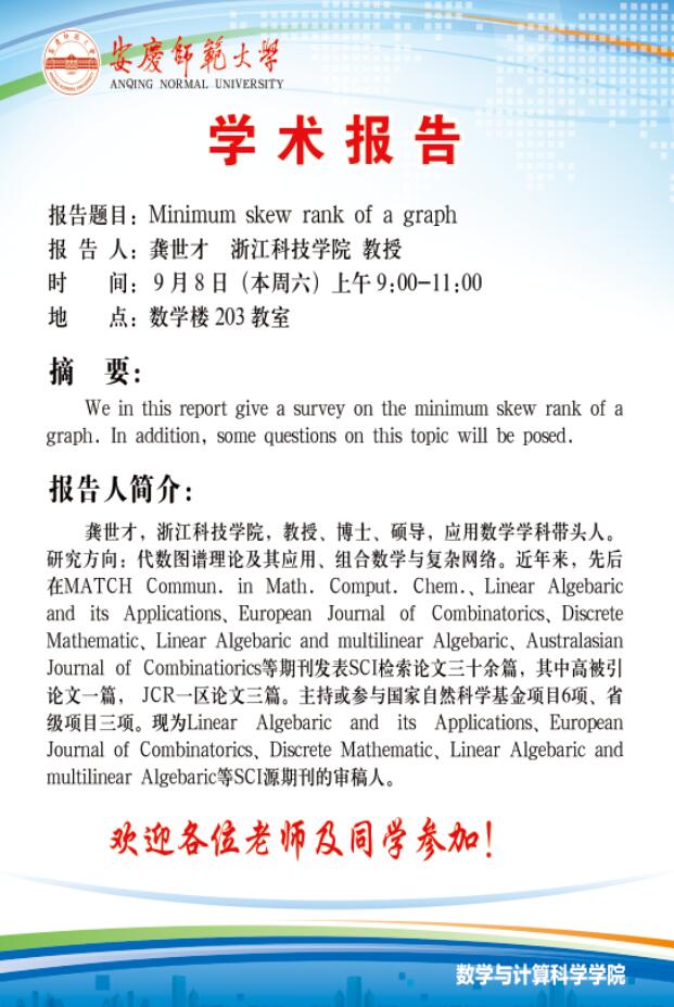 联系邮箱:shulixueyuan@aqnu.edu.cn