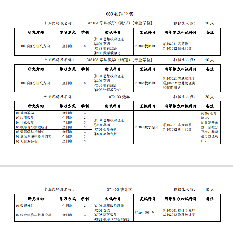 ◆学科硕士学位授权点:数学一级学科、统计学一级学科