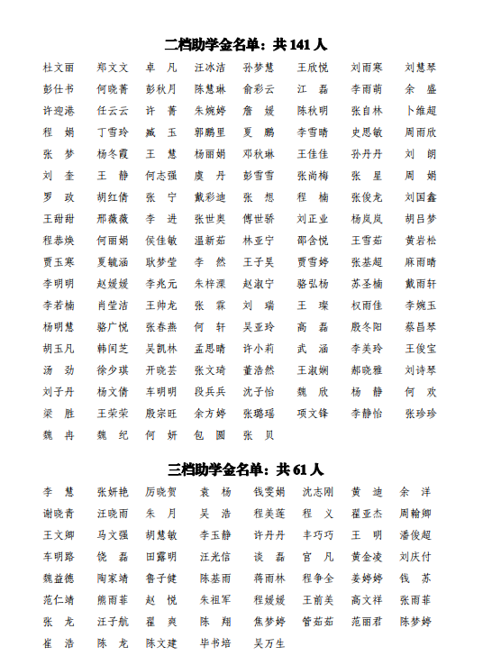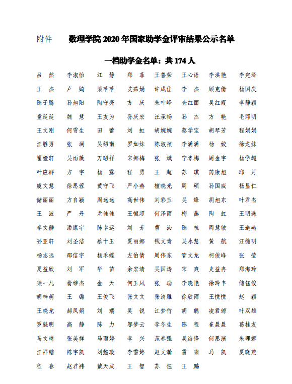 太阳成集团tyc234cc2020年本科生国家助学金评审结果公示