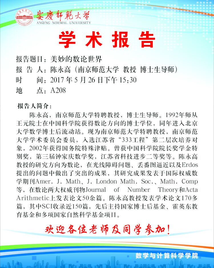 联系邮箱:shulixueyuan@aqnu.edu.cn