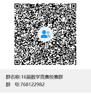 2. 参赛报名:参赛同学请于2024年5月12日18:00前在太阳成集团tyc234cc大学生数学爱好者协会办公室(地点:数理楼I605)进行参赛报名登记,同时于5月12日18:00前加入竞赛QQ群(群号:768122982)。