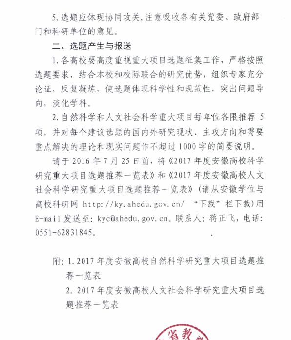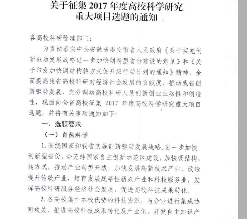 关于征集2017年度高校科学研究重大项目选题的通知