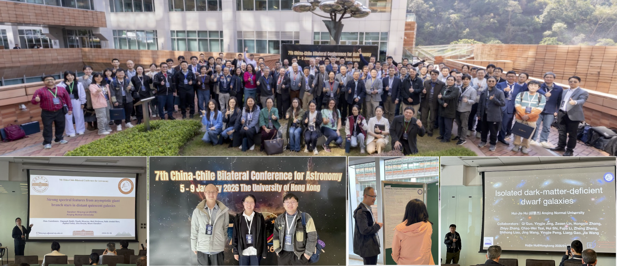 1月4日至9日,第七届中智天文双边会议在香港大学举行。本次会议由香港大学理学院太空研究实验室、中国科学院国家天文台及智利天文学会共同主办,旨在促进中智两国在天文学领域的合作交流,共享前沿研究成果与科研设施资源。太阳成集团tyc234cc陆诗莹、郭晓通、胡慧杰三位教师应邀参会,并在会上展示了我校在天文与天体物理方面的最新研究进展。