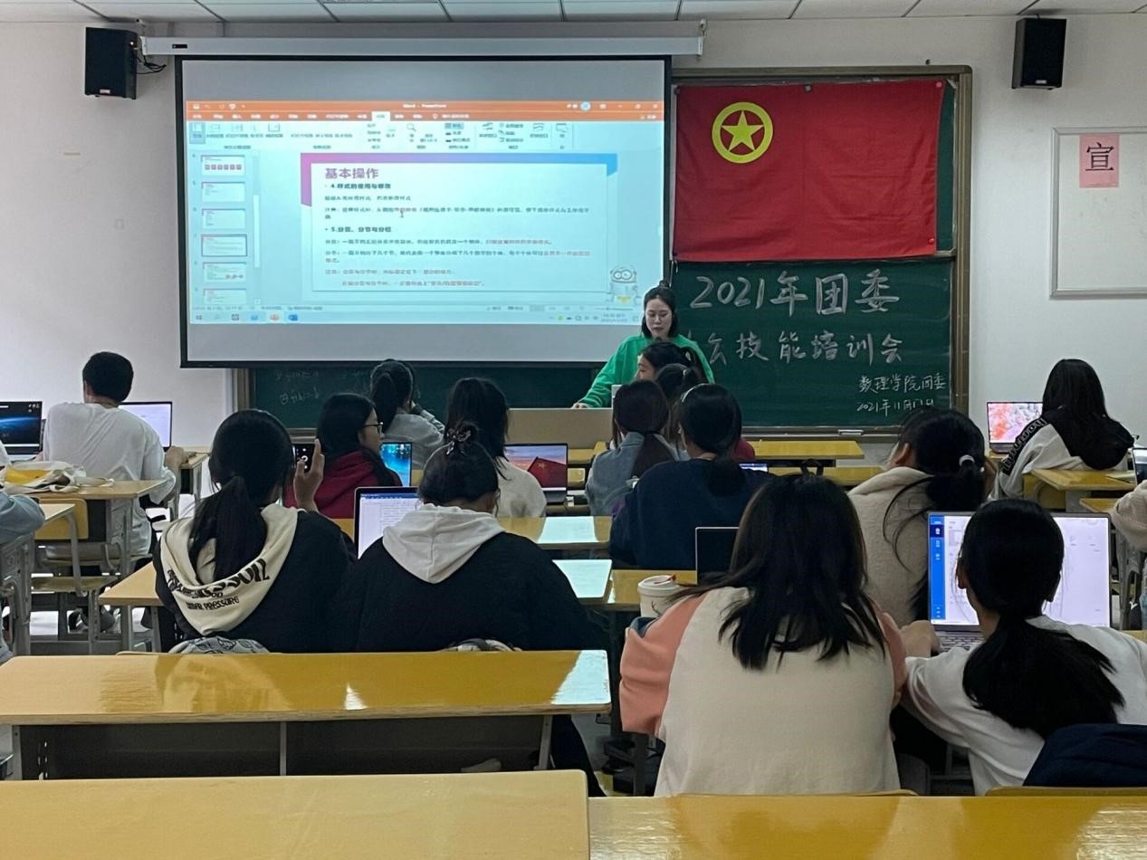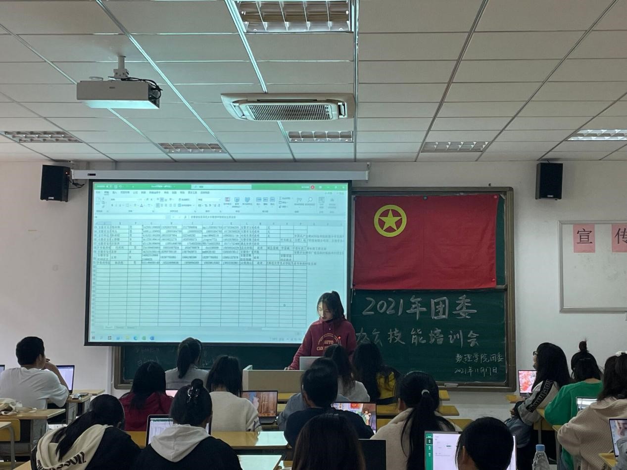 本次会议由团委办公室芦婷主持。培训会开始由教师教育学院王洋给大家介绍Word软件的基本操作,并详细讲述了操作细节和常用的快捷键使用。团委宣传部刘佩向大家介绍Excel软件的操作方法,通过现场提问的方式与同学们互动,使大家在活跃的氛围中对讲解的内容印象更加深刻。
