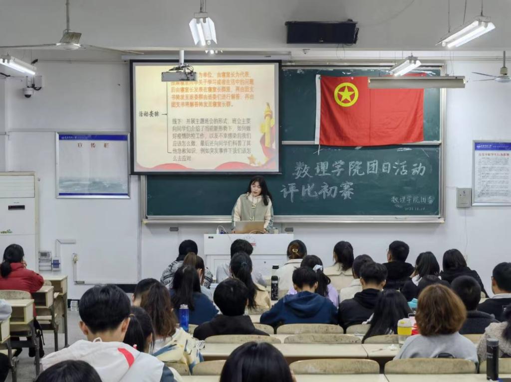 为隆重庆祝中国共产党成立100周年,深入学习习近平总书记在党史学习教育大会上的重要讲话精神。11月10日晚6点,太阳成集团tyc234cc团委在A楼303教室举办团日活动评比初赛,太阳成集团tyc234cc2020级和2021级各班团支书和太阳成集团tyc234cc团委全体成员参加了本次答辩活动。