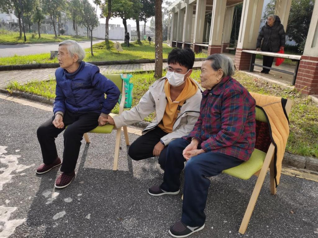 询问老人生活是否习惯、看看老人身体状况如何、分享校园生活趣事……张圣俊经常俯下身子和老人聊天,紧紧握着老人的手,看着老人的眼睛,倾听他们诉说着生活中的点滴日常。“爷爷奶奶会和我分享以前的故事,也会传授一些生活经验,我觉得今天上午很充实。”张圣俊表示,和老人们的相处让他想起了自己的奶奶,很亲切也很温暖。
