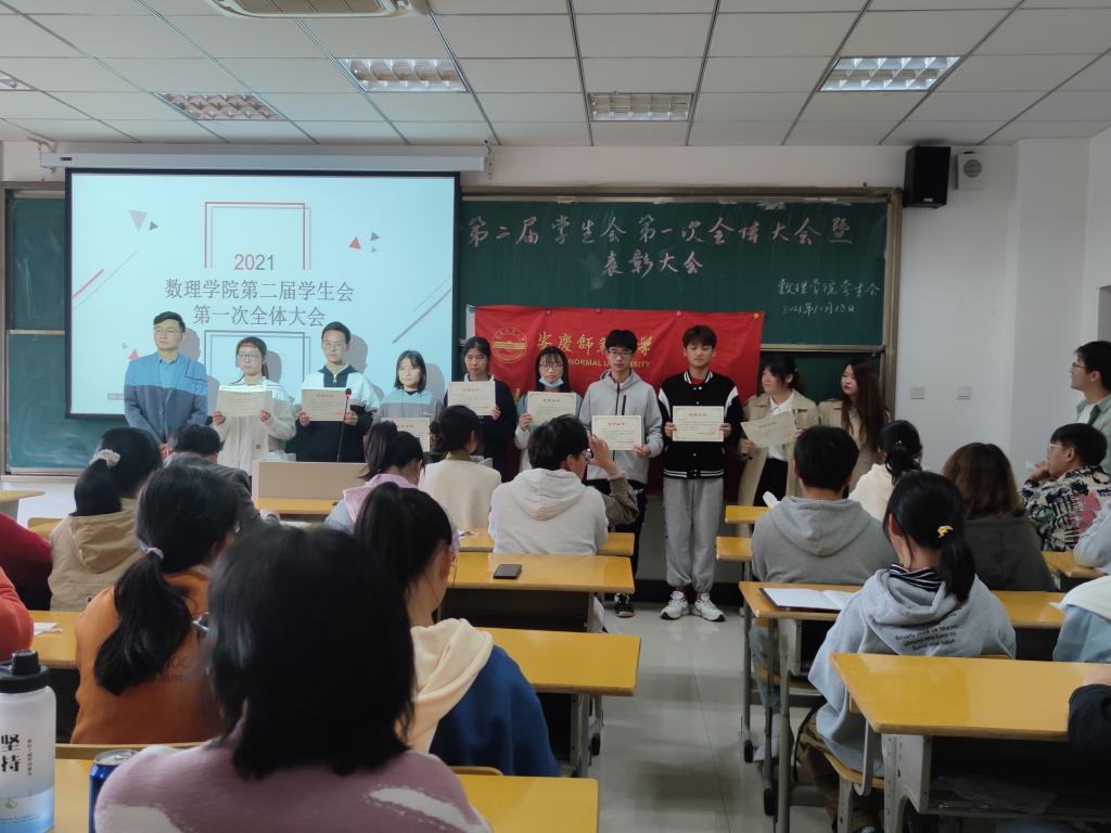 10月18日中午,我院在数理楼204教室召开第二届学生会第一次全体大会暨表彰大会,我院团委负责老师汪健、辅导员代表们、上届主席团成员王沛然学长以及学生会全体成员出席参加此次会议。会议由学生会成员谭旗泉主持。