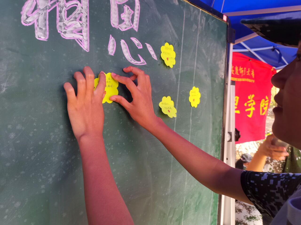 一张写着“未来要当一个好数学老师!”的红色纸条被贴在了展板的中央,这张心愿条来自于数学专业2021(2)班的林心雨。“我从小就想成为一名数学老师,所以填志愿的时候就奔着安庆师大的数学系来了。”提及今后目标,林心雨表示,要努力学习,希望大四时能成功考编,尽快实现当上数学老师的心愿,日后桃李满天下。