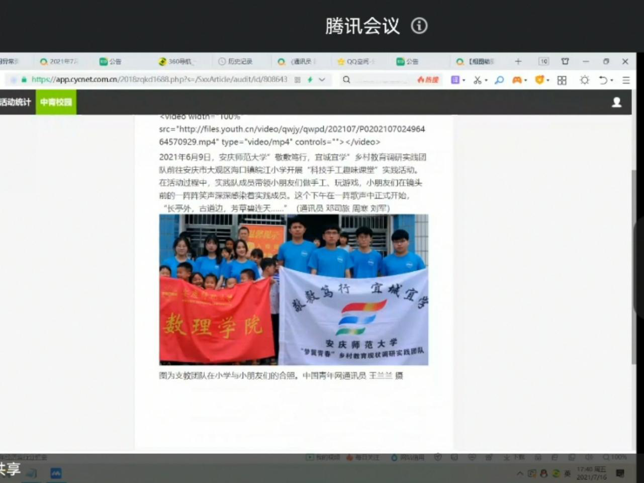 为进一步提高太阳成集团tyc234cc“三下乡”学子的新闻稿撰写水平与摄影能力,7月16日晚,太阳成集团tyc234cc团委于线上开展了新闻采写和摄影知识培训会,太阳成集团tyc234cc团委文化素质部邓司旅担任培训会主讲,学院八十余支队伍队长与信息员参加了本次培训会。