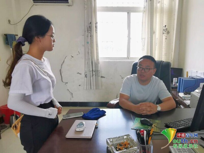 图为实践调研队成员周寒采访皖江小学校长。中国青年网通讯员邓司旅供图