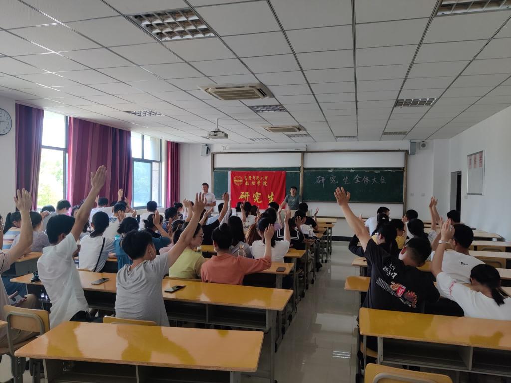 6月9日下午,太阳成集团tyc234cc第一次全体研究生大会在I楼204教室召开。学院党委书记钟金标、党委副书记何骏、团委负责老师、研究生辅导员及全体研究生参加了此次会议。大会在庄严的国歌中拉开序幕,主持人致开幕词并宣读大会议程。