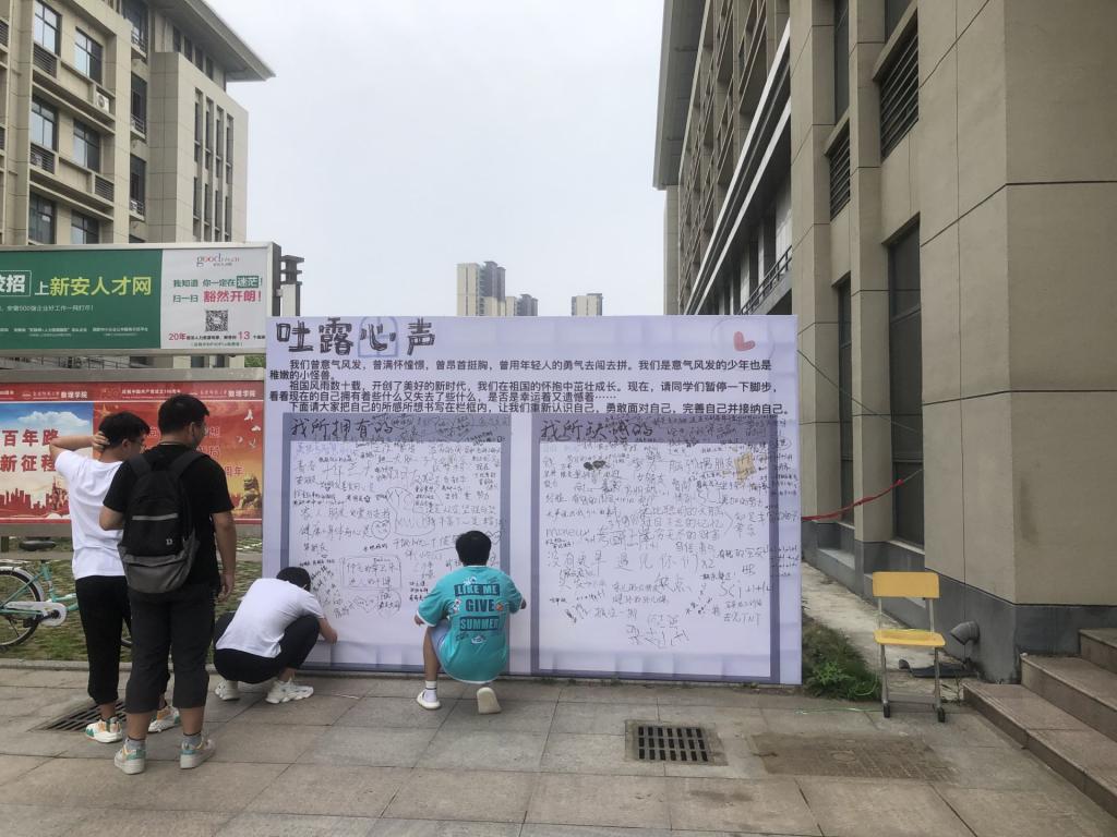 “青春”、“才华”、“积极向上的乐观”、“探索新事物的激情”……除了优秀情景剧本的征集活动,学院还设立了“吐露心声”留言墙,分为“我所拥有的”和“我所缺憾的”两个板块,学生们可以用笔在这面墙上“畅所欲言”,将所思所想书写在相应的版块内。