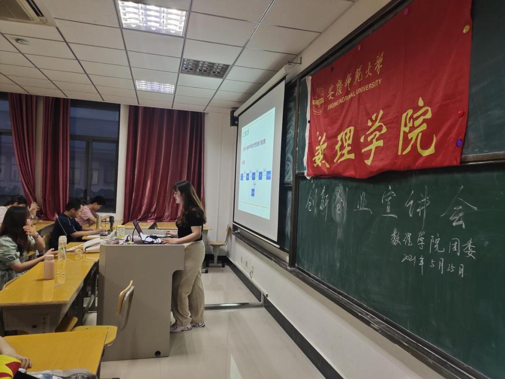 宣讲会伊始,钱媛同学分享了自己作为一名理科生参加创新创业类赛事的心路历程,她以“创新创业赛与数理的结合”为主题,向同学们强调:“参加创新创业赛更多的是发挥的自己学科优势,利用数学建模方法、以市场调查为背景去发现课题,去开展项目。”