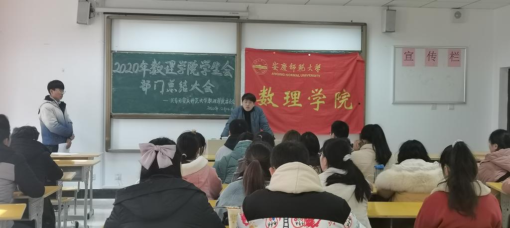 为推动我院学生会工作更长久的发展,提高学生会干部工作的热情和质量,12月24日中午,学院在数理楼201教室召开了2020年度学生会总结大会。参加本次会议的人员有学院团委负责老师汪健以及学生会全体成员。