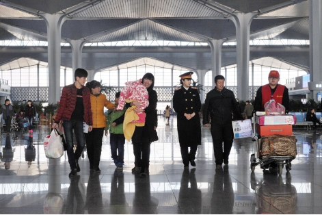 太原南站工作人员送小秀玲一行人出站。中国青年网见习记者 高明摄