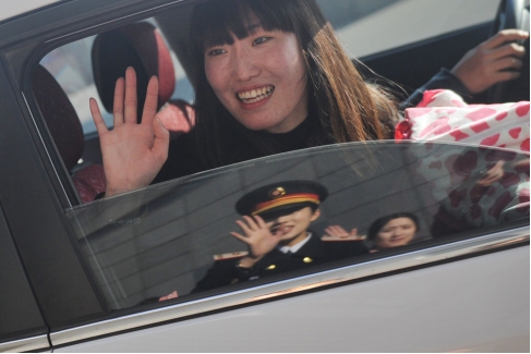 一行人乘车前往汽车站,黄沁茹和大家告别。中国青年网见习记者 高明摄