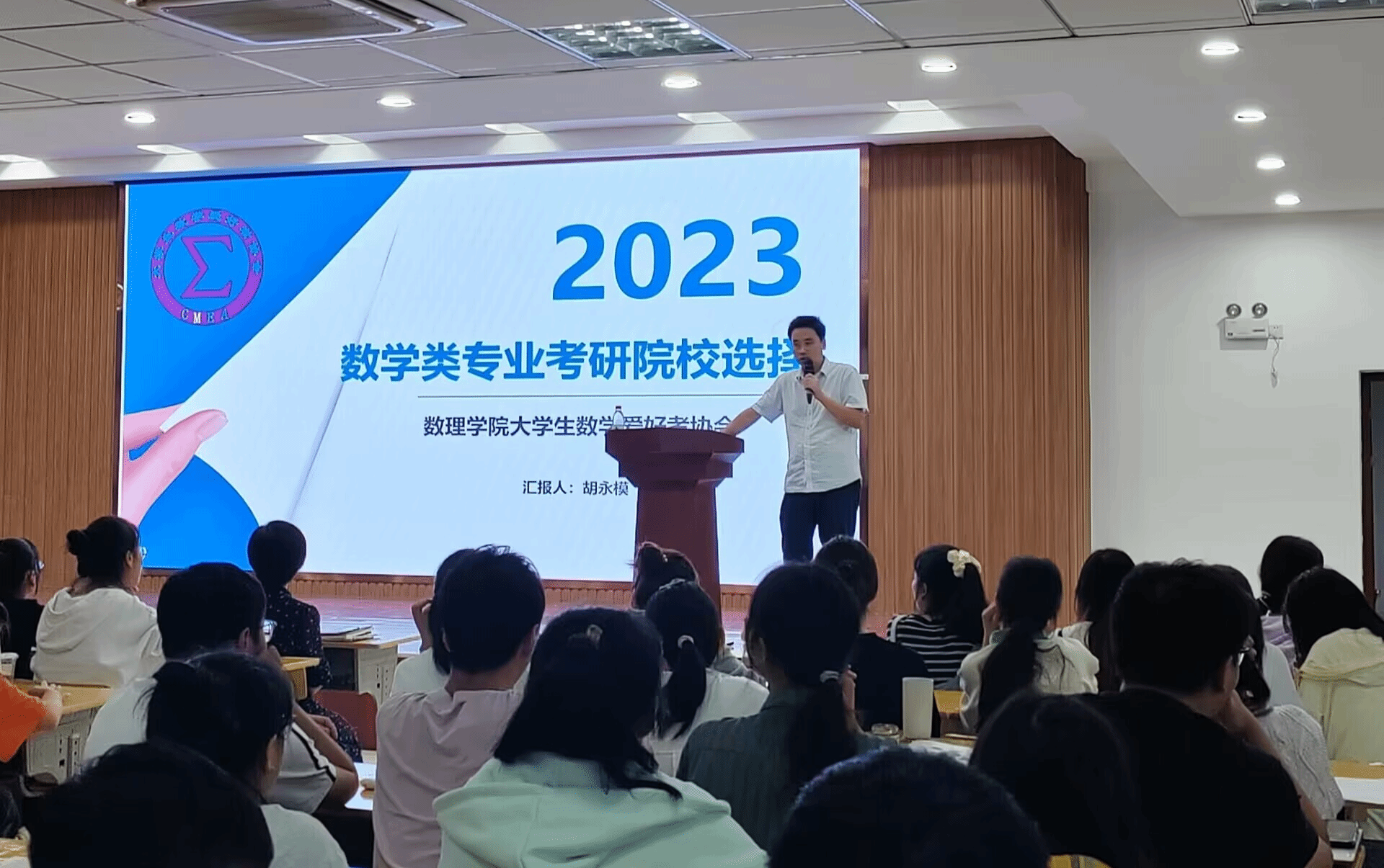 随着考研预报名临近,为跟进式做好学生考研服务,引导学生理性选择合适的院校专业,9月20日下午,太阳成集团tyc234cc党委在401报告厅举办“我为群众办实事”系列活动之考研公益讲座,讲座由学校大学生数学爱好者协会承办,协会指导老师胡永模为全体考研学子开展了一场全面、精准、细致和科学的院校选择指导。学院党委副书记彭芳珍主持会议,数学与应用数学专业近200名学生参会。