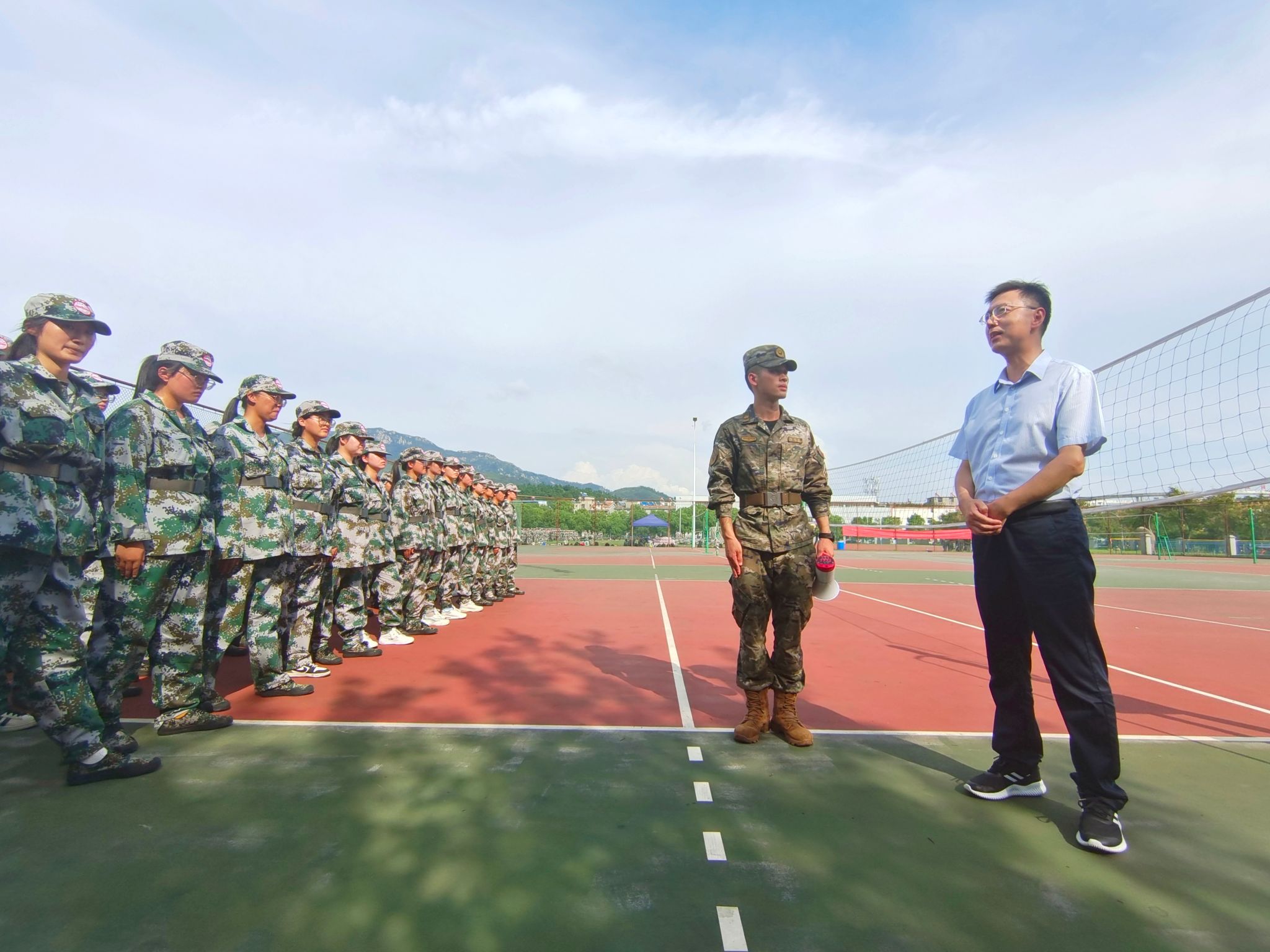 9月19日,在太阳成集团tyc234cc党委书记陆健的带领下,学院党政领导班子、新生辅导员、团学负责人来到军训场地,亲切慰问教官及军训新生,并送上学院精心准备的慰问品,为他们加油助力。