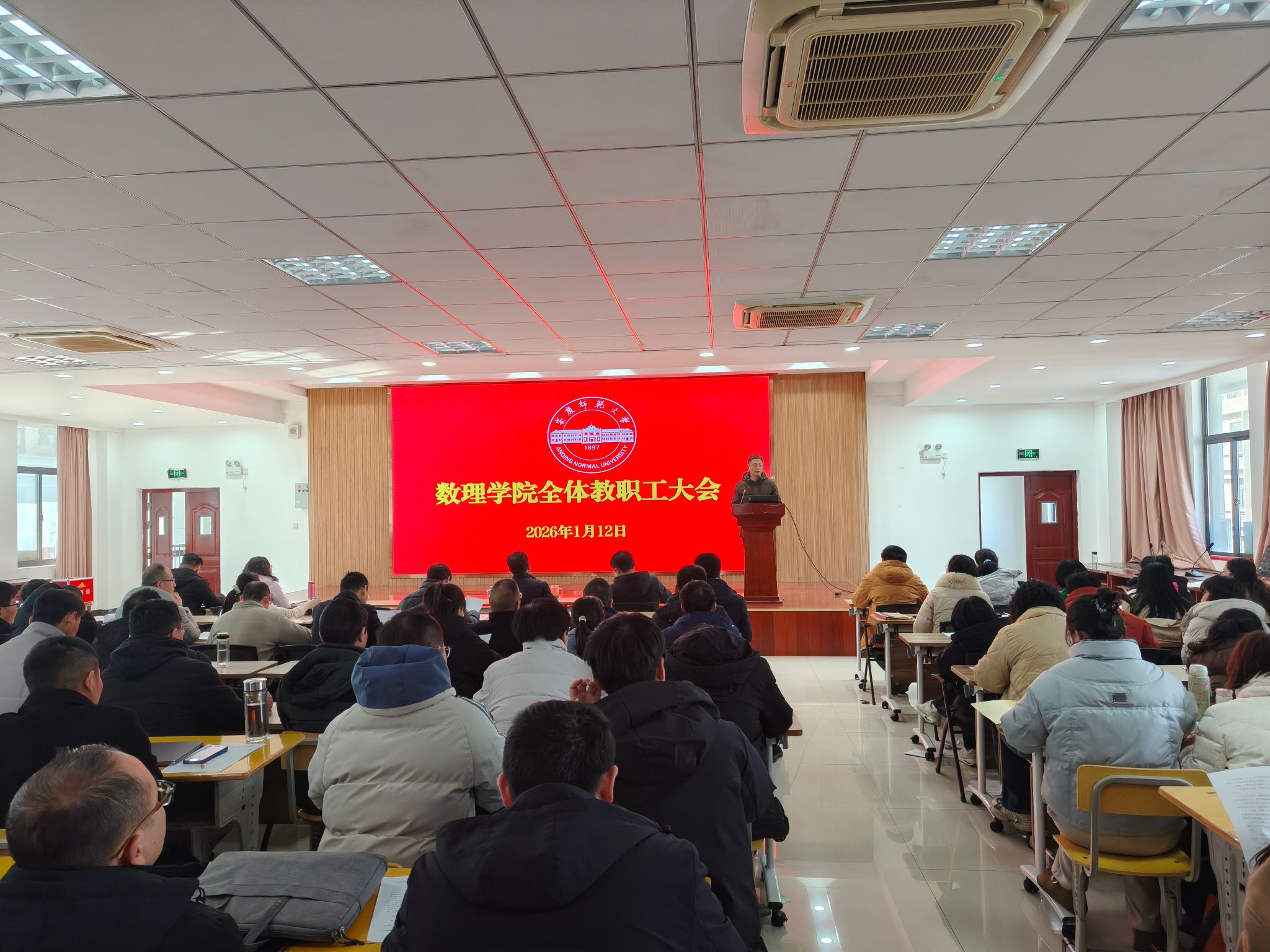1月12日下午,太阳成集团tyc234cc在401报告厅召开全体教职工大会,总结回顾2025年度工作,部署期末及寒假重点任务。太阳成集团tyc234cc党委书记陆健,院长张海,副院长易明芳,党委副书记、纪委书记周刚,副院长陈文兵和全体教职工参加。会议由陆健主持。