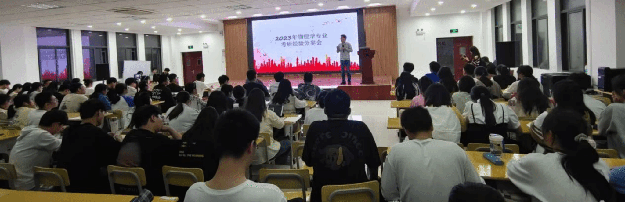 为扎实开展“我为师生办实事”系列活动,充分发挥师生党员的先锋模范作用,加强我院学风建设,5月5日,物理专业学生党支部联合院团委举办物理学专业考研分享交流会,邀请7位23届考研成功学子为学弟学妹传授考经验,助力学弟学妹们考研圆梦。活动共有150余名物理学专业学生参加,物理系主任张平伟主持会议。