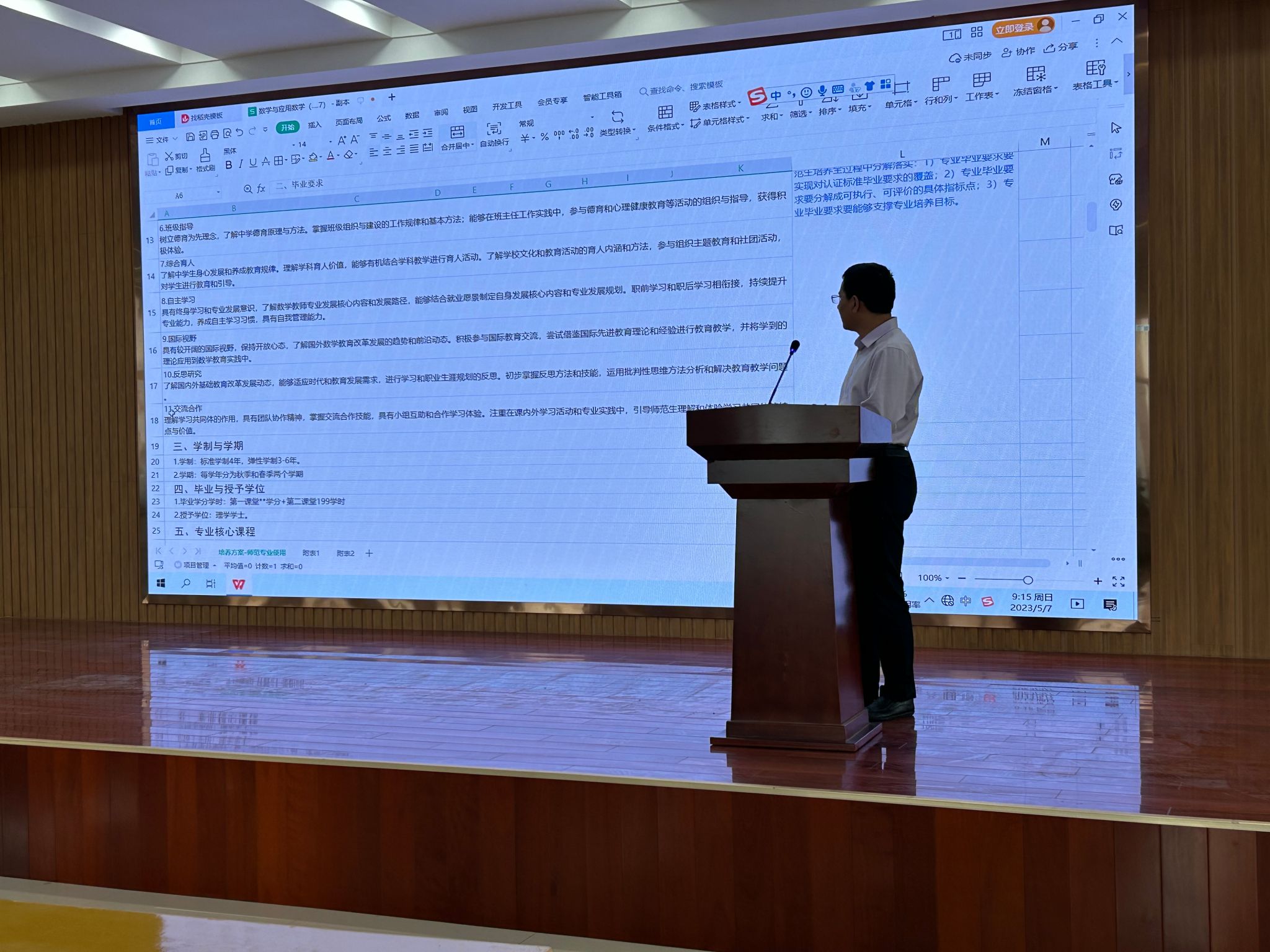 2023年5月7日上午,我院在数理楼401报告厅召开2023版本科专业人才培养方案修订答辩会。学院教学工作委员会成员、本科专业人才培养方案修订工作领导小组成员及骨干教师代表、教务办公室工作人员参加会议,副院长易明芳主持会议。