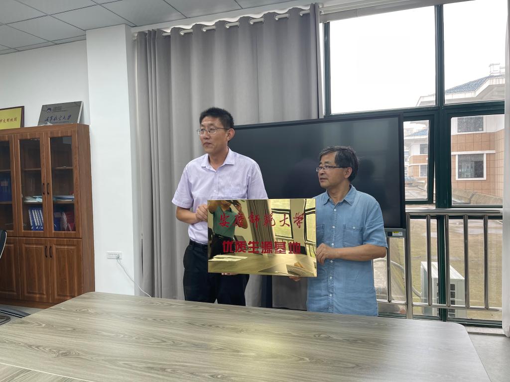钟金标一行向六所示范中学的校长详细介绍了我校近年本科生招生情况及2021年招生政策,并与淮南第二中学、凤台第一中学及寿县安丰中学签订了优质生源基地协议。同时,向各位校长了解了我院数学与应用数学、物理学两个师范专业毕业生培养目标达成情况,各位校长对我院毕业生培养质量给予了充分肯定。