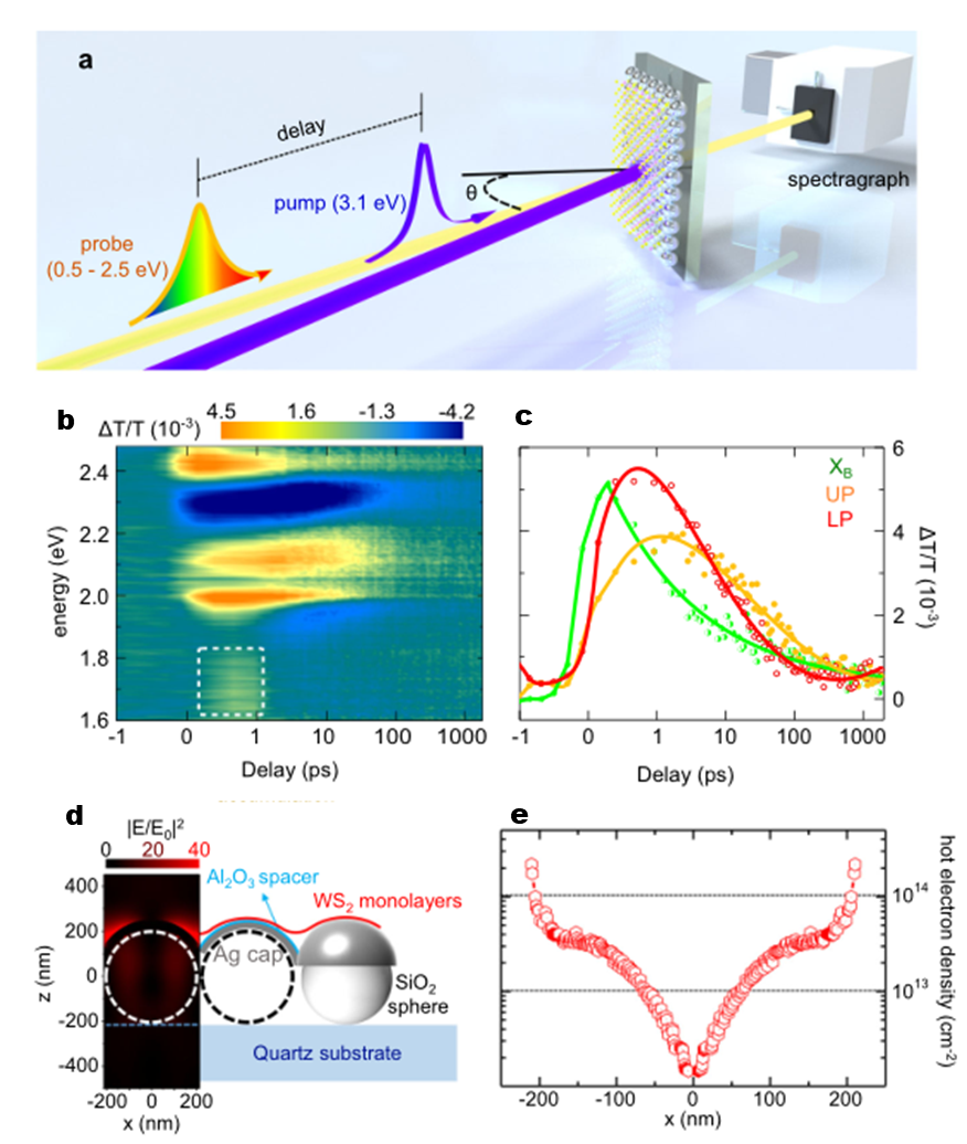 来源: 作者: 发布时间:2022-10-13Bandgap control is of central importance for semiconductor technologies. The traditional means of control is to dope the lattice chemically, electrically or optically with charge carriers. Chen et al. demonstrate for the first time a widely tunable bandgap (renormalisation up to 650 meV at room-temperature) in two-dimensional (2D) semiconductors by coherently doping the lattice with plasmonic hot electrons.