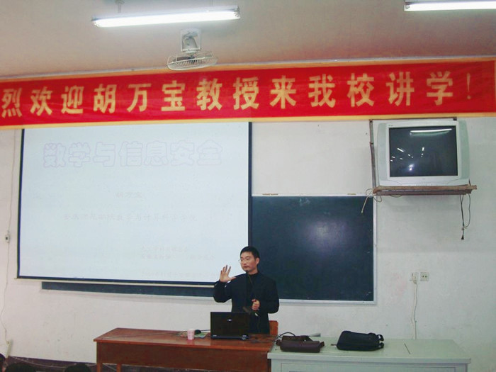 教书育人、刻苦钻研之余,胡万宝主动用知识服务地方、服务社会,呼吁校市产学研用协同育人。2009年至今,胡万宝每年参与九三学社“百名专家进乡村学堂讲科普”活动,为枞阳三中、枞阳钱桥中学、皖河农场三益马店回民小学、大观区山口小学等多所学校讲授数学与信息安全相关知识,将深奥的科学简单化,通过科普传播,帮助2000余名中小学生拓宽视野、接受新知识和正能量。