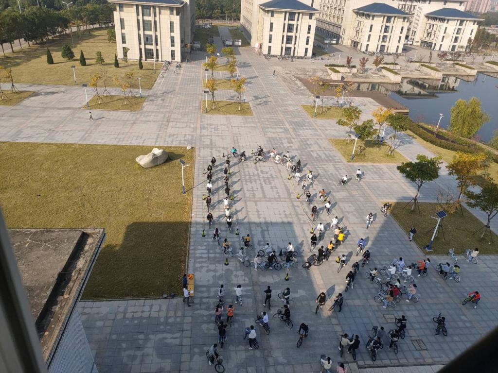 10月30日上午,我院交通流与复杂系统课题组和北京交通大学、香港大学、合肥工业大学等团队合作在我校数理学院楼前广场开展了自行车双向流实验。本次实验共招募100名同学作为自行车骑行志愿者,实验旨在研究自行车双向流的复杂动态特性。通过现场录像,后期提取分析视频数据的方法,获取双向自行车流密度-速度曲线、密度-流量曲线,研究拥堵演变的特征,并进一步研究系统的相变、临界现象等复杂动态特性,为后续的理论建模、计算机仿真研究提供数据支撑。自行车骑行是低碳环保出行的重要方式之一,相关研究也可以为交通、市政等部门对自行车道的设计和交通管理提供科学参考。