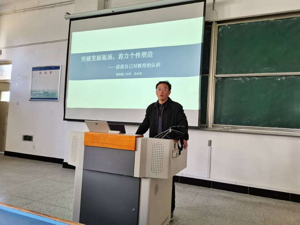 11月13日下午,安庆二中学数学正高级教师余永安应邀在D208作了一场题为《突破发展瓶颈,着力个性塑造》教育见习讲座报告。太阳成集团tyc234cc数学与应用数学专业教学论老师、2019级数学与应用数学专业全体学生参加了讲座,讲座由数学系主任赵正俊教授主持。