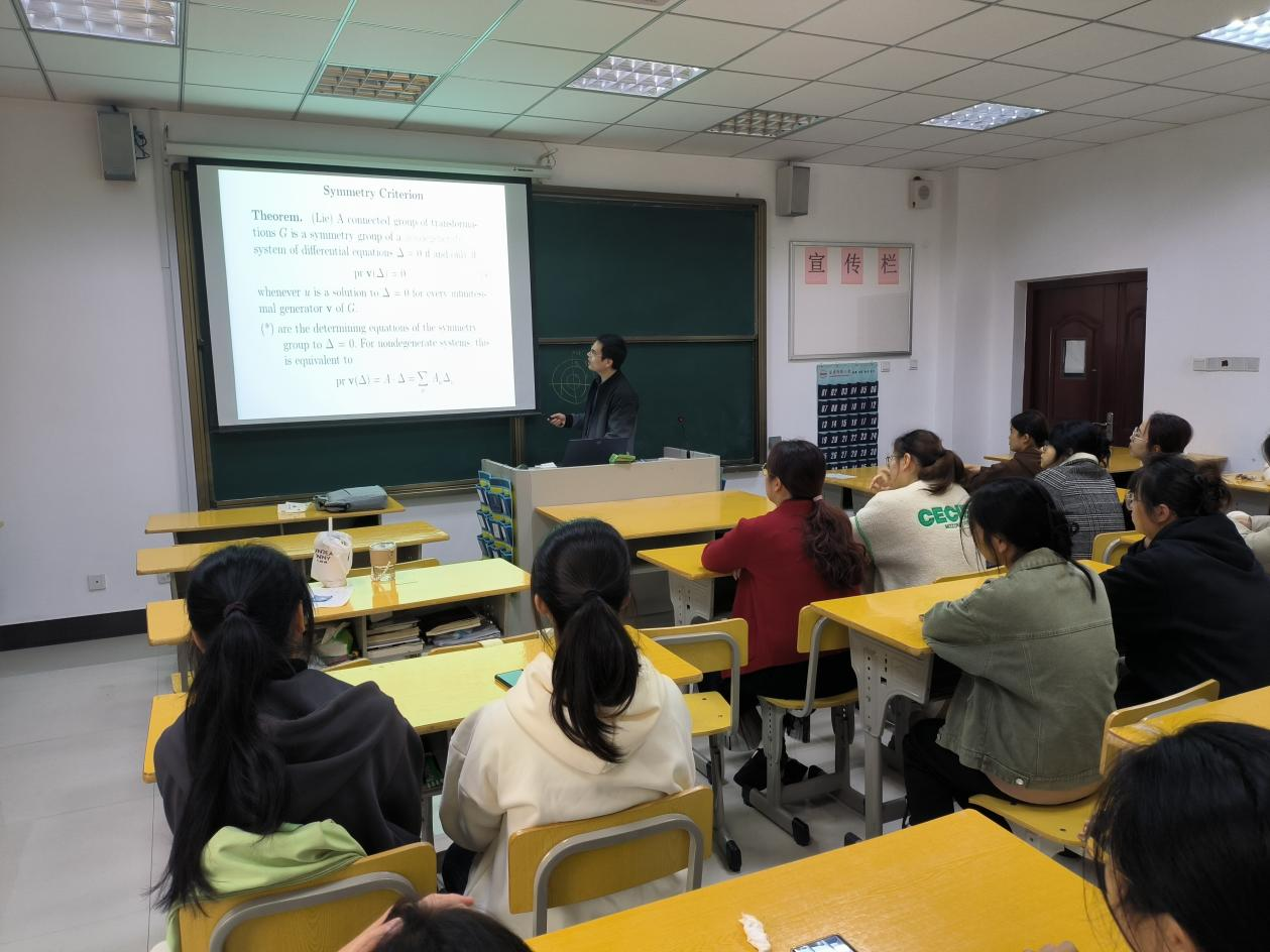 11月22日下午,太阳成集团tyc234cc章海副教授在I205教室作“Symmetry Methods for Differential Equations”学术报告,太阳成集团tyc234cc数学专业本科生和部分研究生聆听了学术报告。