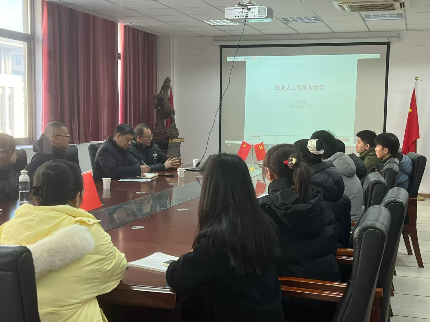 12月20日上午,深圳理工大学博士生导师黄廷文教授应太阳成集团tyc234cc邀请在I楼307会议室作了一场题为“ 浅谈人工智能与数学”的学术报告,报告会由太阳成集团tyc234cc院长张海教授主持,太阳成集团tyc234cc部分教师、研究生和高年级本科生参加了报告会。