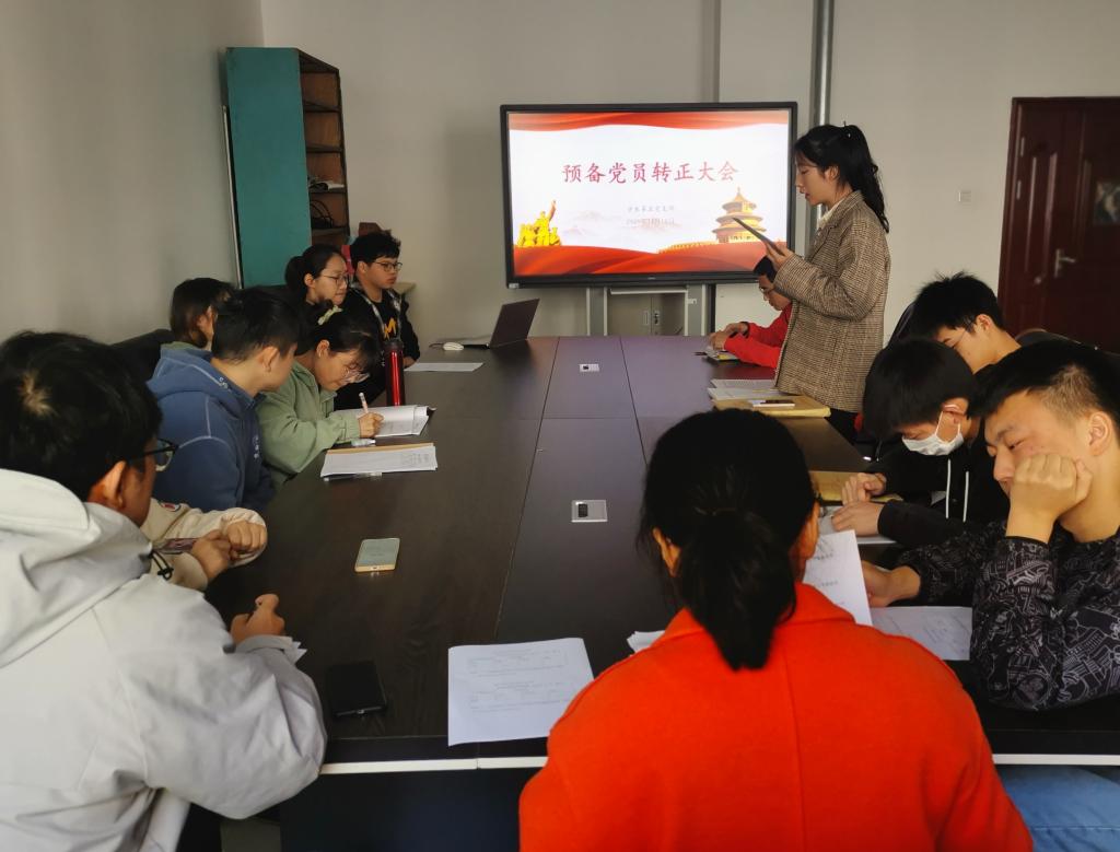 11月19日上午十一点半,太阳成集团tyc234cc学生第五党支部在数学楼210教室召开了预备党员转正大会。本次预备党员转正大会由支部书记王粉梅老师主持,支部正式党员、预备党员、发展对象参加了此次大会。