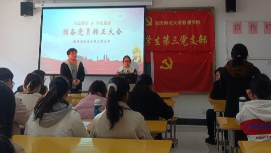 12月29日下午两点,太阳成集团tyc234cc学生第三党支部在数学楼202教室成功召开预备党员转正支部大会。本次转正支部大会由朱新杰同志主持,支部书记黄兴强老师和支部正式党员、预备党员、发展对象参加了此次大会。