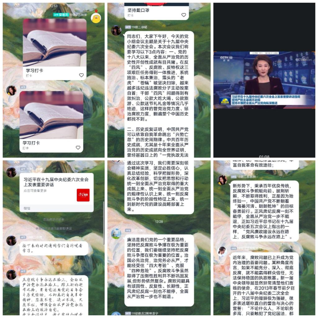 活动伊始,徐晴同志向我们介绍了本次活动召开的意义,然后带领大家共同学习了十九届中央纪委六次全会的相关内容。