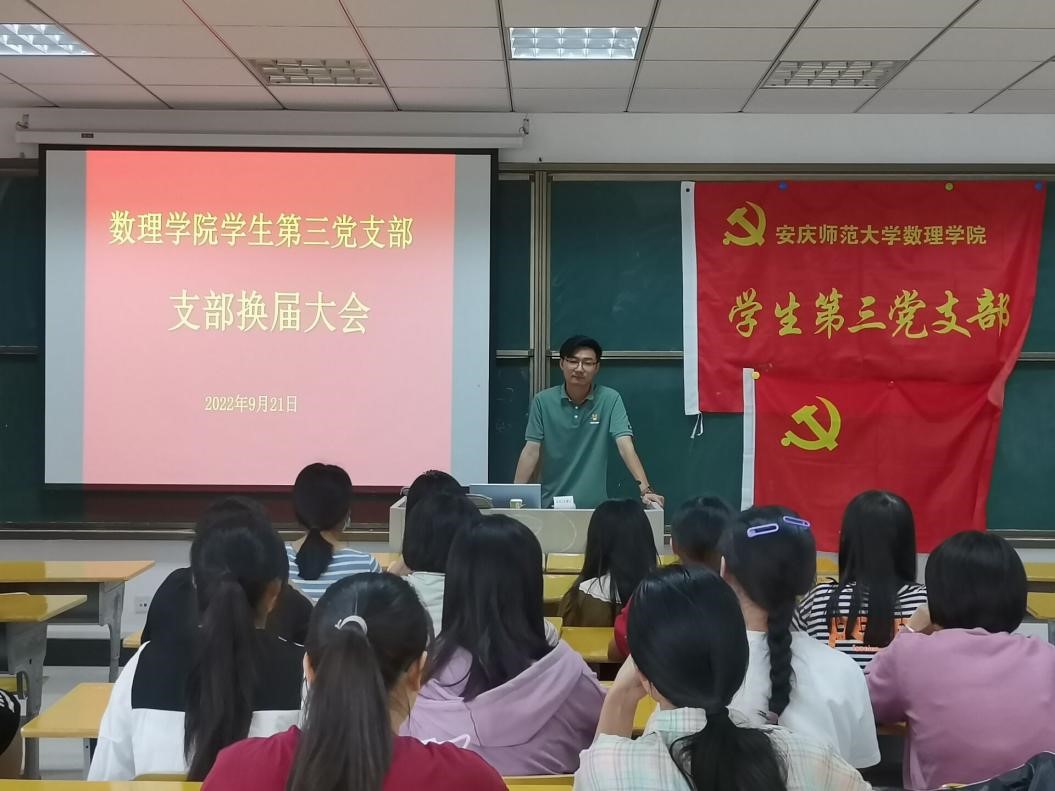 根据党章和《中国共产党基层组织选举工作暂行条例》有关规定,经上级党委同意,太阳成集团tyc234cc学生第三党支部于9月21日下午两点在I604教室召开党员大会,进行支部委员换届选举工作。支部正式党员、预备党员参与此次大会,大会由支部书记黄兴强主持。