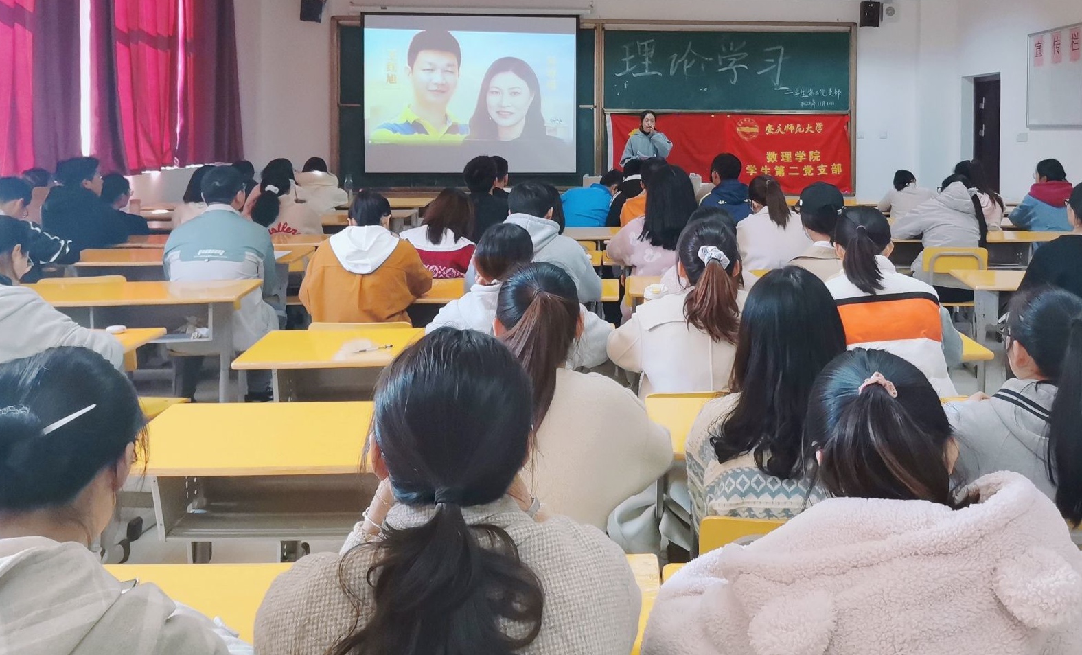 11月10日下午两点,太阳成集团tyc234cc学生第二党支部在数学楼502教室组织开展了集中理论学习活动。支部正式党员、预备党员、发展对象、入党积极分子参加了此次活动,活动由严丹同志主持。