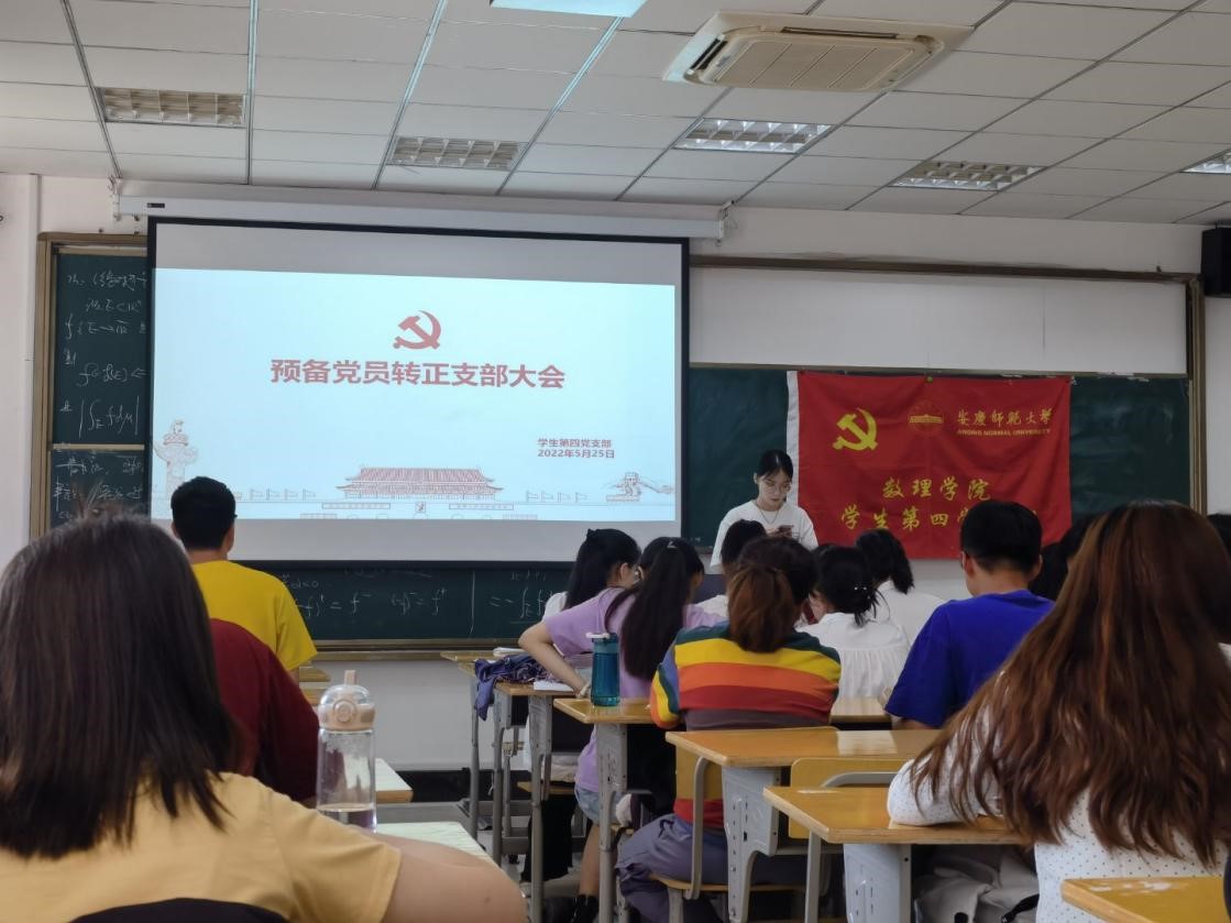 5月25日下午两点三十分,太阳成集团tyc234cc学生第四党支部在数学楼I204教室成功召开预备党员转正支部大会。本次转正支部大会由支部书记潘美玲老师主持,支部正式党员、预备党员和发展对象参加了此次大会。