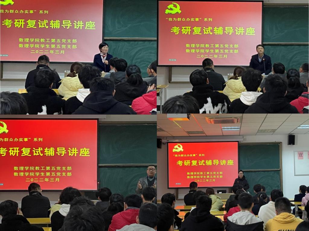 为切实服务学生,贯彻“以学生为中心”的教育理念,教工第五党支部和学生第五党支部于3月24日联合开展考研复试辅导讲座。活动邀请了方官文、殷周平和张平伟等三位骨干教师为考研复试的学生现场答疑解惑。